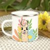 On ne va pas se le cacher, nous adorons les lamas. Les plus perspicaces d’entre-vous auront même remarqué qu’il en figure un sur notre logo. Quoi de plus naturel que de mettre en scène cet animal totem sur un mug en métal émaillé ou en céramique. Un lama, des fleurs, la base.