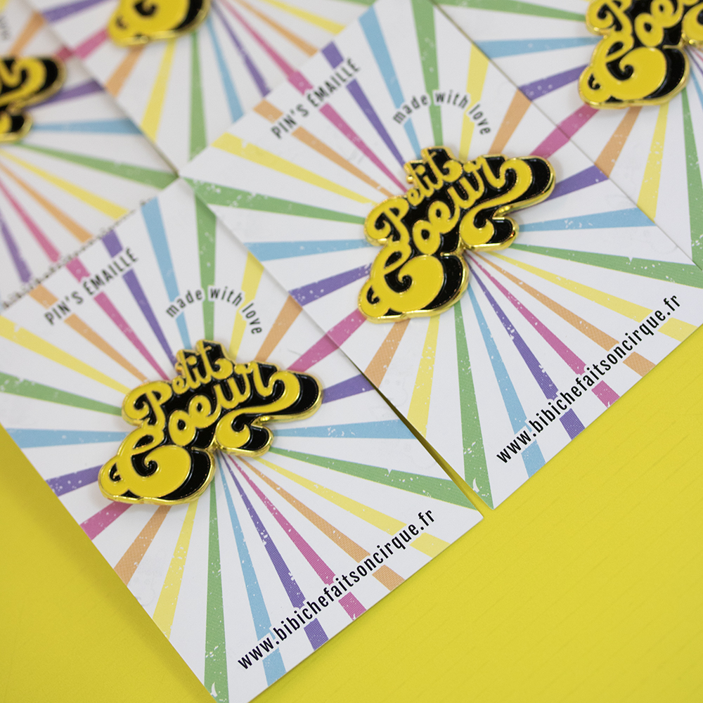 Vous cherchiez l’accessoire parfait pour pimper vos tenues ? Je vous présente notre pin’s émaillé aux couleurs pep’s et au message tout doux 🙂 Il égayera toutes vos tenues, chemises, vestes et même sacs avec son joli jaune, sa typo seventies et son format discret.